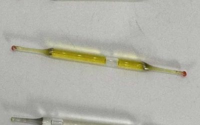 What’s this? Found under a bathroom vanity during remodeling—small glass tubes, 2 inches long, filled with liquid. Any ideas?