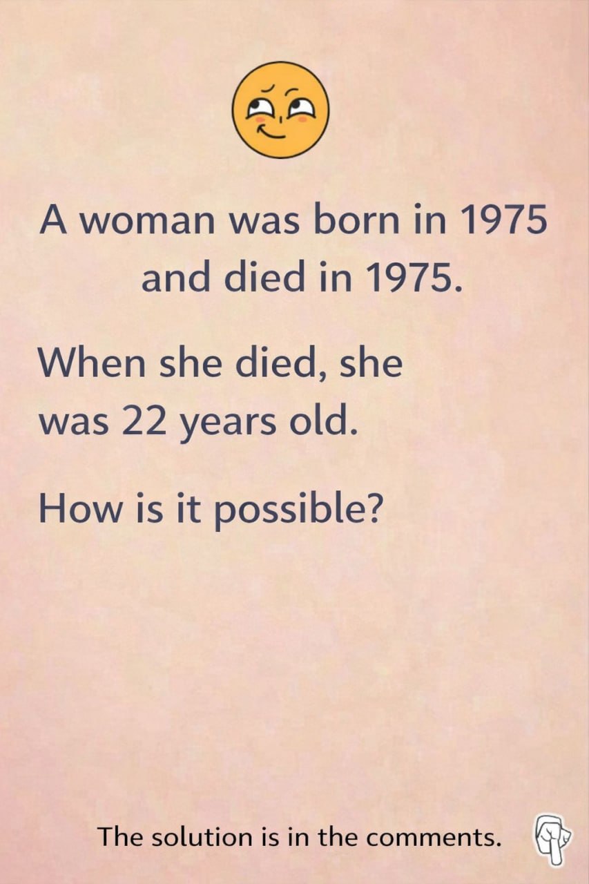 Picture this: you come across this strange phrase while scrolling through the news. “A woman was born in 1975 and died in 1975. He was 22 years old.” It blocks you suddenly. Incomprehensible? Disconcerting? There must be a trap somewhere… But where? Hold on tight, because this riddle tests our logic, our reflexes and requires a pinch of imagination. What if the key was not to think as usual
